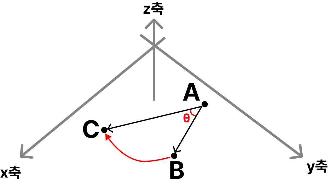 이미지 1에서 A, B, C라는 세 점이 주어졌을 때 점 A, B, C는 현재 시계 방향으로 회전하고 있는 것을 볼 수 있습니다. 벡터 AB에서 벡터 AC로 회전하면서 생긴 각 θ는 감소했기 때문에 음수입니다.