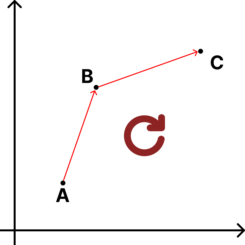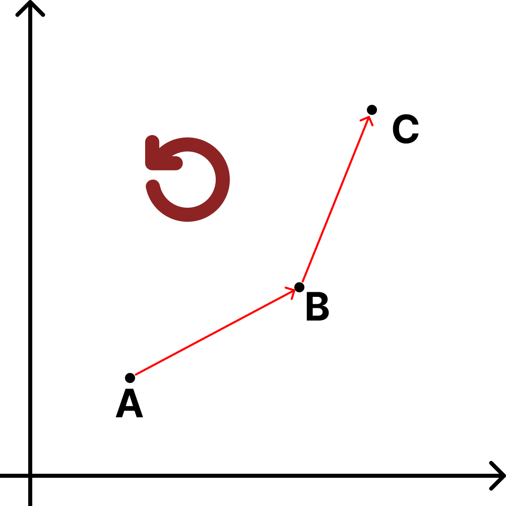따라서 세 점이 주어진 경우 회전 방향을 판단하는 로직은 다음과 같습니다.