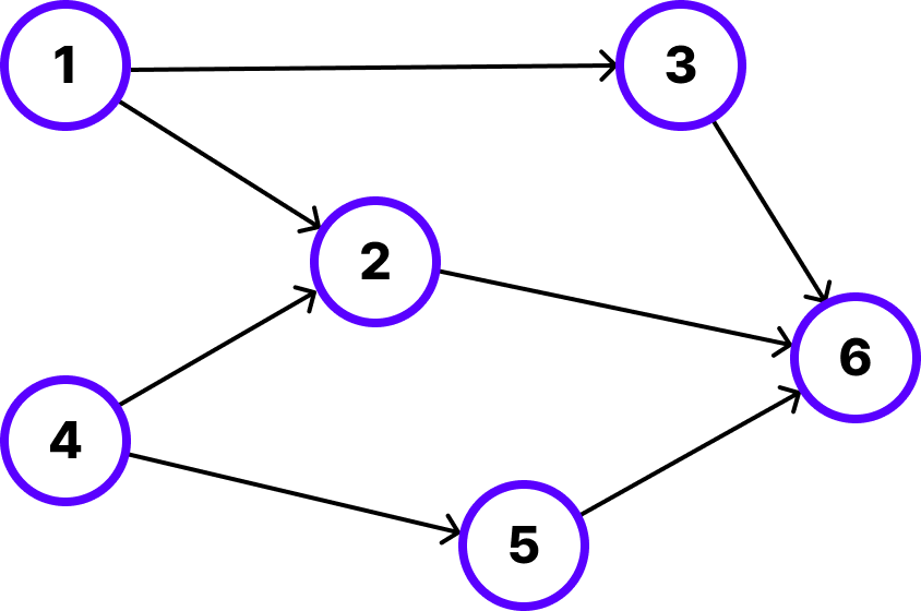 여기서 주의할 점은 1번과 4번 노드끼리는 선후 관계가 없으므로 순서가 바뀌어도 상관없습니다. 또한 2, 3, 5번 노드도 마찬가지로 선후 관계가 없으므로 세 노드끼리는 순서가 바뀌어도 상관없습니다.