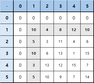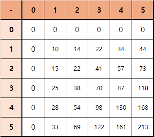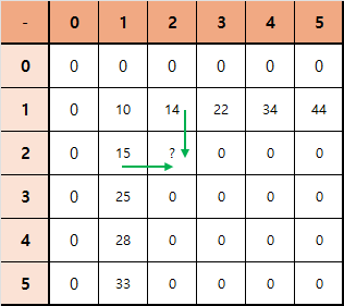 $sum[2][1] = 10 + 5 = 15$