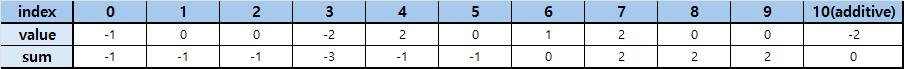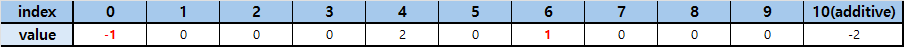 4번 인덱스에 +2를 하고, 마지막 인덱스의 다음 인덱스인 10번 인덱스에 -2를 합니다.