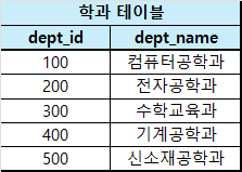 $$ \large \pi_{\text{dept_id}}(\text{학과 테이블}) \ -\ \pi_{\text{dept_id}}(\text{교수 테이블}) $$