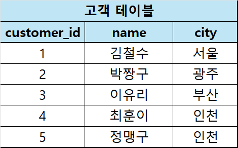 $\large \text{주문 테이블}\ ⟖_{고객테이블.customer\_id=주문테이블.customer\_id}\ \text{고객 테이블}$